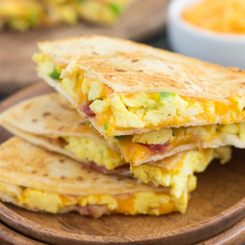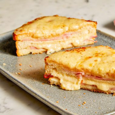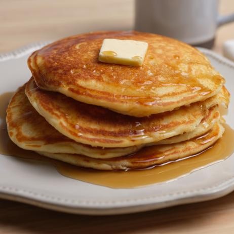 With seasonal fruit preserves, whipped butter, maple syrup.