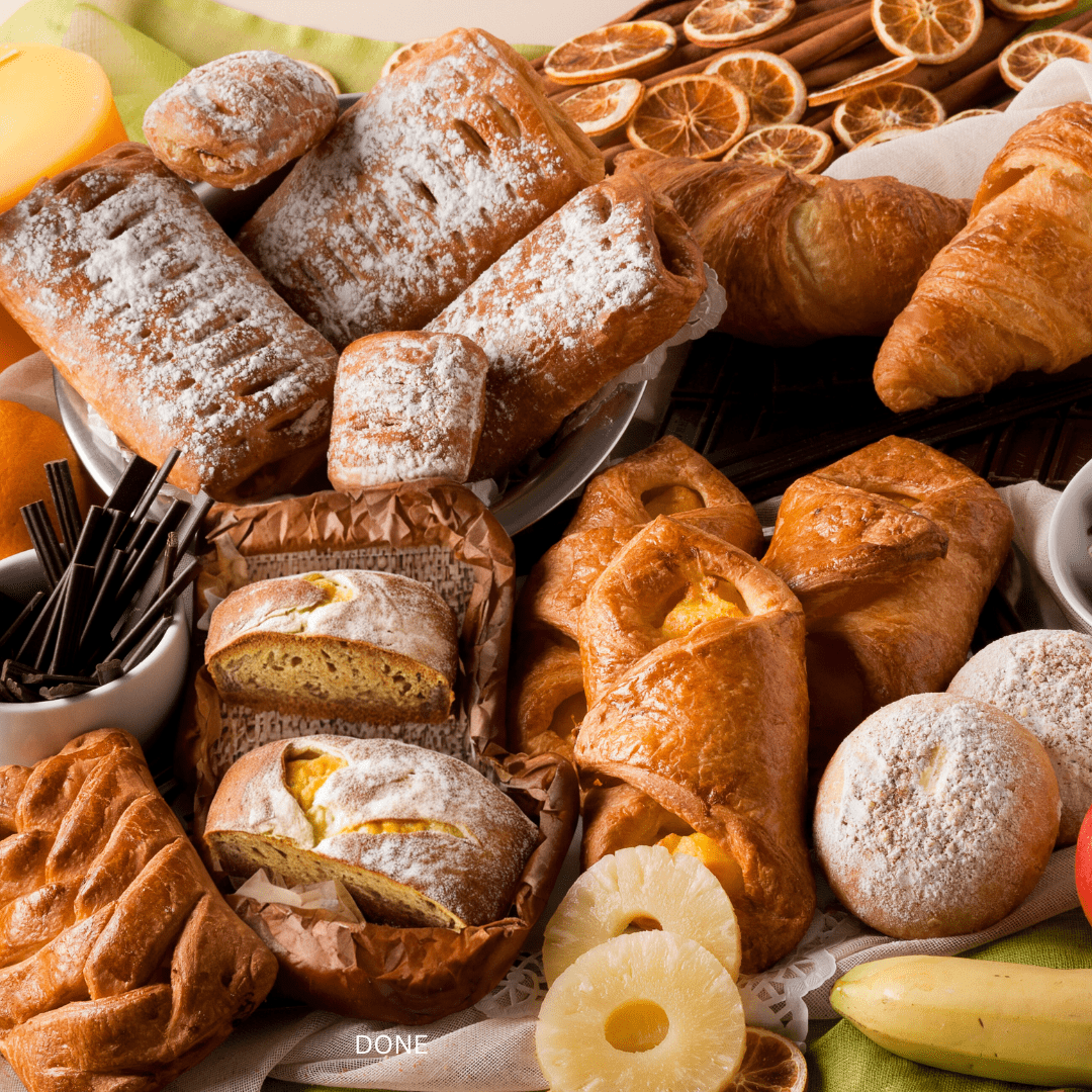 Assortment of Breakfast Pastries, Loaves, Whipped Butter & House Preserves.