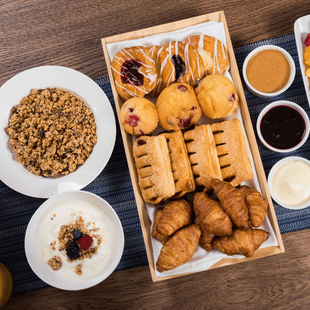 Comes with a fruit platter and Breakfast parfait or cup choice